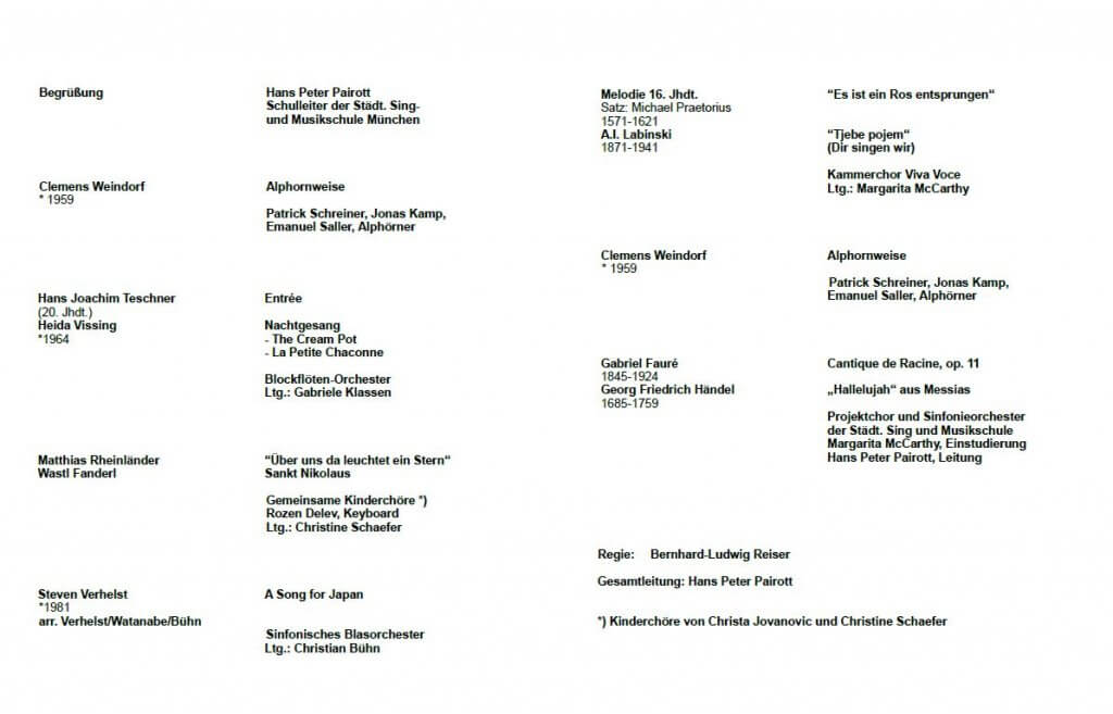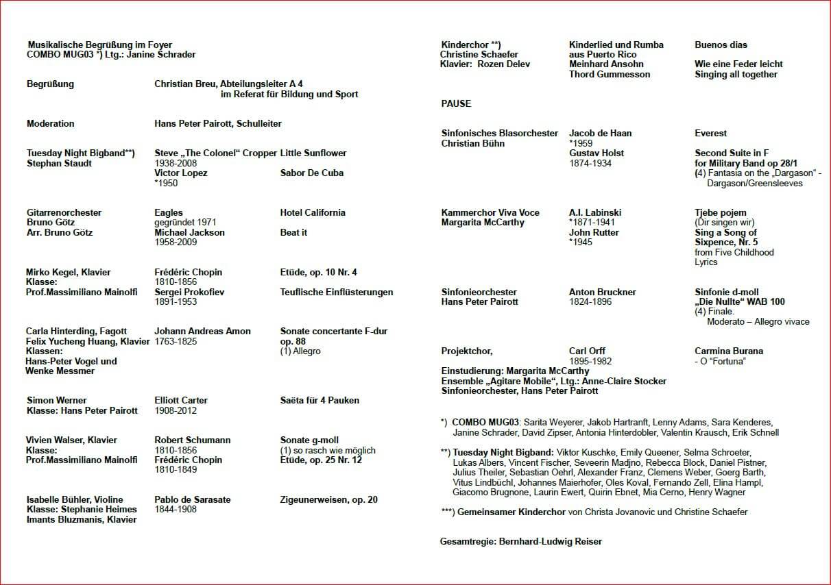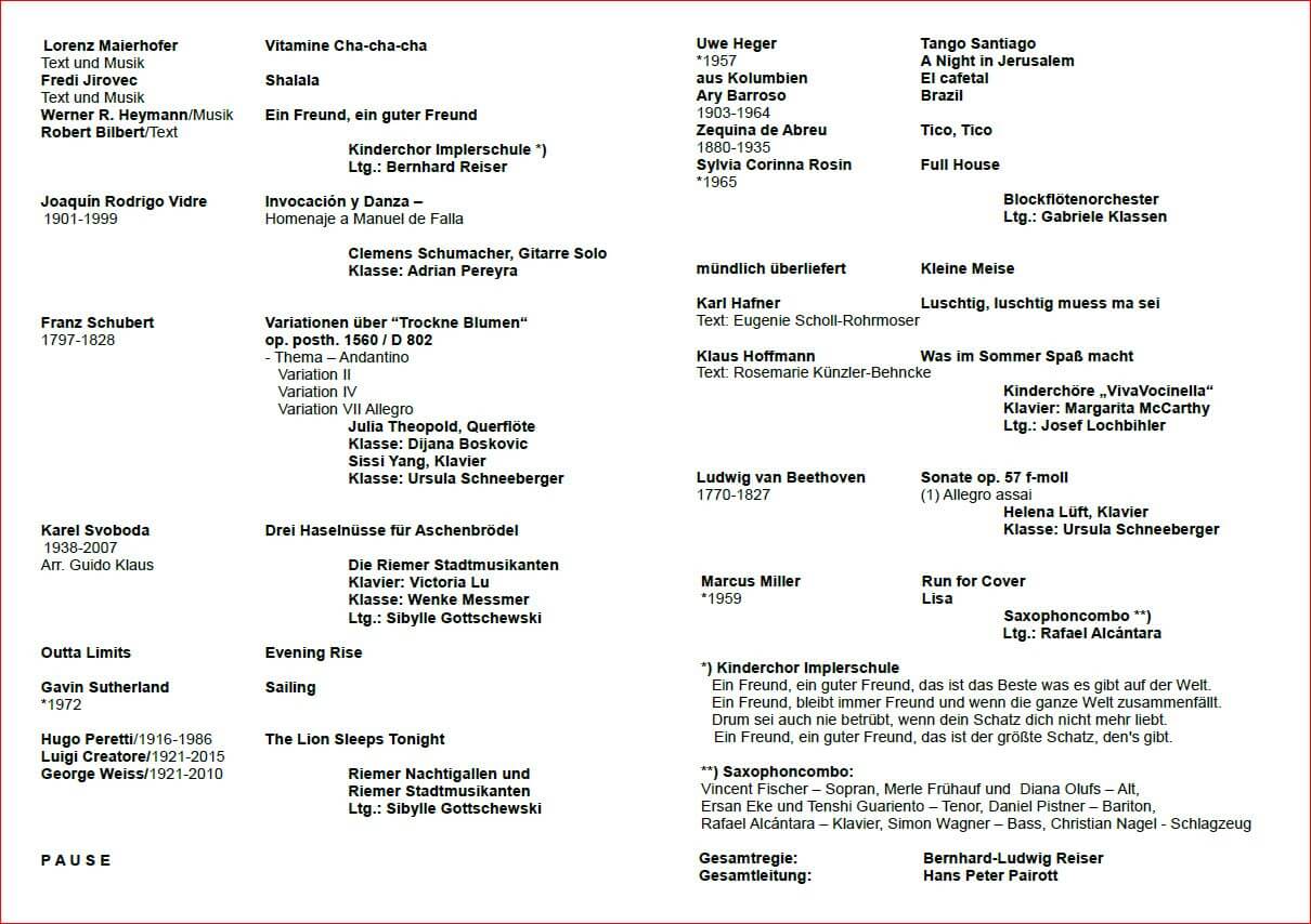 Sonntag 14.07.2019 18.00 Uhr | Sommerkonzert der Städt. Sing- und Musikschule Carl-Orff-Saal, Gasteig, Kellerstrasse 6 Solisten, Chöre und Orchester Ltg. Hans Peter Pairott ![]() |