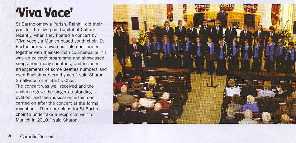 Pressebericht vom Auftritt des Chores Viva Voce in St. Bartholomew’s Parish Church, Rainhill, England