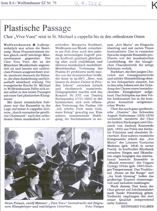 …Nach diesem Test kann der Chor getrost auf Jubiläumsfahrt nach Sankt Petersburg gehen. Vielleicht empfangen ihn dort seiner Qualität entsprechend mehr Zuhörer.